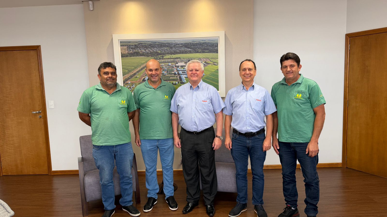 Os novos diretores da Coopercaf foram recebidos pelo presidente da Copacol, Valter Pitol, e pelo vice-presidente, James Fernando de Morais.