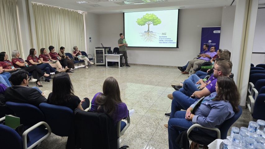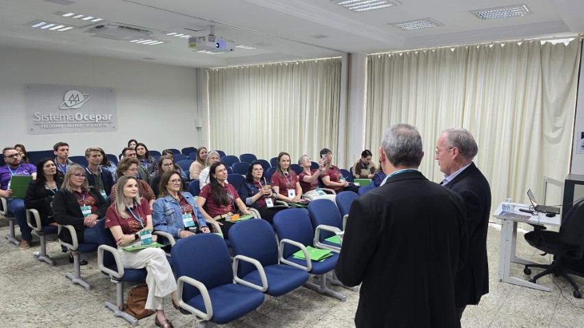 A mestre em Gestão de Cooperativas e especialista em Educação Corporativa, Sandra de Souza Schmidt, falou sobre conectar gerações por meio do cooperativismo com atenção à governança, ao propósito e ao legado. Sua fala provocou o resgate e o compartilhamento das vivências de cada liderança durante seu mandato. “O mandato está se encerrando, mas o trabalho não para por aqui porque são pessoas envolvidas e que, após suas experiências com líderes, com tudo o que vivenciaram e aprenderam, passam a ser construtores dos futuros das cooperativas”, avaliou.