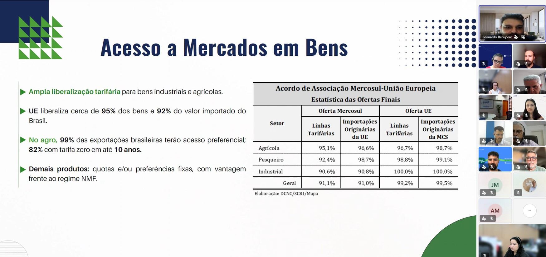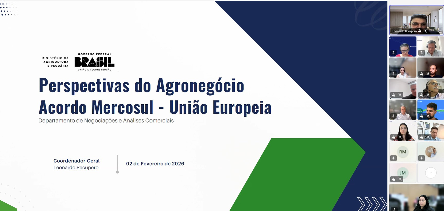 Há um entendimento geral no setor agropecuário de que o agro brasileiro vai ter mais ganhos do que possíveis perdas em decorrência do recém firmado Acordo de Parceria Estratégica Mercosul-União Europeia (UE). A afirmação é do coordenador geral de Negociações Comerciais do Ministério da Agricultura e Pecuária, Leonardo Recupero. Ele participou, na última sexta-feira (20/02), da webinar Perspectivas do Agronegócio União Europeia-Mercosul, realizada pelo Sistema Ocepar. O evento foi acompanhado por cerca de 50 lideranças e profissionais de cooperativas paranaenses do ramo agropecuário.