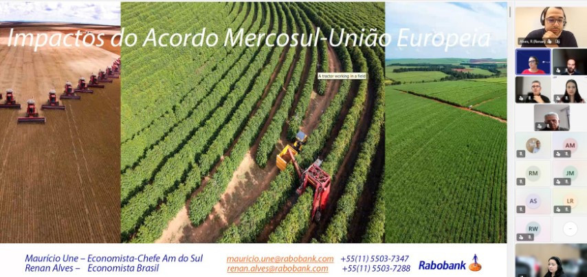 Outro palestrante do evento foi o economista do Rabobank, Renan Alves. Segundo ele, no Brasil, o agronegócio é o setor que será o mais beneficiado com o tratado. “A indústria também pode ganhar, mas é sobretudo o setor agropecuário que terá mais ganhos”, frisou. Alves destacou que o acordo trará bastante impacto não apenas no campo econômico, mas também geopolítico e de cooperação, com a possibilidade de ampliar investimentos externos vindos da Europa.