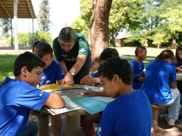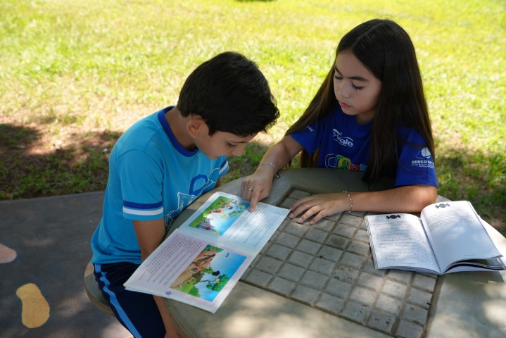 Outros 11 eram pré-leitores. Inspirada pela metodologia do programa Cooperjovem, a professora Silvana Fuji estimulou os alunos do 4º ano a sonharem coletivamente uma solução. Do esforço conjunto nasceu a ideia de esses estudantes auxiliarem os colegas do 2º ano a aprenderem a ler. Daí surgiu o projeto “Entre páginas e sonhos”. A ideia resultou na criação de um “cantinho da leitura” pelos próprios alunos. No gramado em frente ao prédio da escola, duas casinhas foram construídas para abrigar livros. Os alunos vão até elas, escolhem uma publicação, e sentam-se ao redor de pequenas mesas para a leitura. Ali, duas sibipirunas de troncos grossos parecem ter feito um acordo com os alunos. “Eu vos abrigo sob a minha sombra e vocês me dão a alegria espontânea que só as crianças têm.”