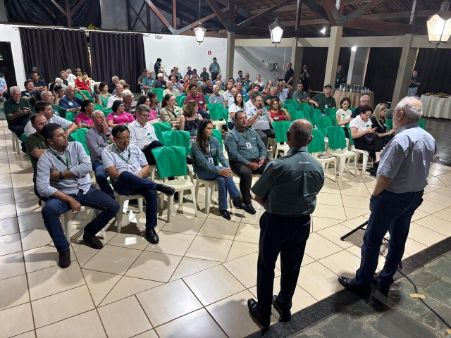 Os encontros com os produtores em seus municípios acontecem a cada seis meses, sempre no início de cada semestre, para um acompanhamento do desempenho da cooperativa e apresentação de projeções a respeito de suas atividades e de mercado para os principais produtos agrícolas. (Assessoria de Imprensa Cocamar)