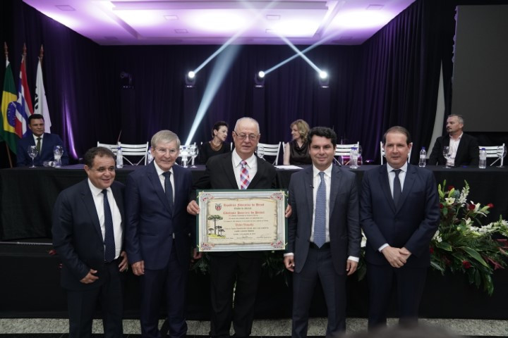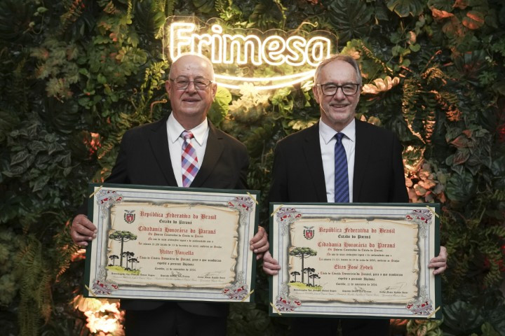 Em uma noite marcada por emoção e reconhecimento cívico, a Assembleia Legislativa do Paraná (Alep) realizou, no dia 5 de dezembro, na Assercoop, em Medianeira (PR), a solenidade de entrega do Título de Cidadão Honorário do Paraná a Valter Vanzella e Elias José Zydek, ex-presidente e atual presidente da Frimesa. A honraria, uma das mais altas concedidas pelo Estado, destacou o impacto das gestões de ambos no desenvolvimento econômico e social da região Oeste e de todo o Paraná.