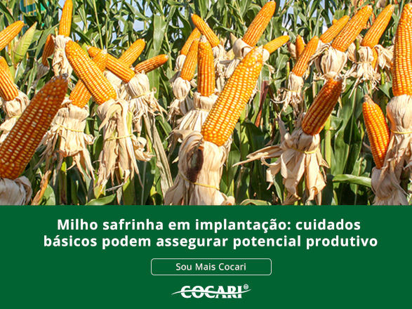 A fase de implantação do milho safrinha é determinante para o teto produtivo. Profundidade de plantio inadequada, população mal ajustada e compactação do solo estão entre os principais erros que limitam resultados nas regiões da Cocari.