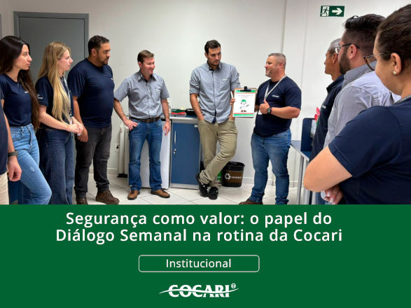 Com o objetivo de proteger as equipes e garantir eficiência operacional, a Cocari adota diversas iniciativas preventivas, entre elas o Diálogo Semanal de Segurança, uma ferramenta estratégica que reflete o compromisso com a saúde e segurança no trabalho.