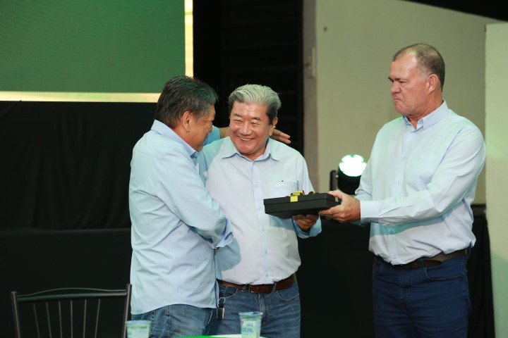 Outro momento especial foi a homenagem ao presidente Jorge Hashimoto, que encerra um ciclo de 12 anos à frente da cooperativa. Ele recebeu uma placa de reconhecimento e gratidão entregue pelo presidente da Ocepar, José Roberto Ricken, e pelo vice-presidente João Francisco Sanches Filho “quero agradecer a todos que estiveram ao meu lado nessa caminhada. Aos cooperados, ao nosso time de colaboradores, que sempre atuou com dedicação e comprometimento, ajudando a construir a nossa cooperativa. Também agradeço aos parceiros comerciais que têm apoiado o crescimento da Integrada. Este é um momento muito marcante para mim”, destacou Hashimoto.