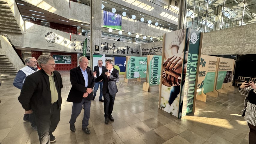 O secretário estadual da Agricultura e do Abastecimento, Márcio Nunes, visitou, nessa segunda-feira (21/07), a exposição “História, legado e futuro”, organizada pelo Sistema Ocepar e pela Frísia para celebrar os 100 anos da cooperativa e o Ano Internacional das Cooperativas declarado pela Organização das Nações Unidas (ONU). A partir desta semana até 31 de julho, a exposição está aberta para visitação na sede do Instituto de Desenvolvimento Rural do Paraná - Iapar-Emater (IDR-Paraná), localizado na rua Bandeira, 500, no bairro Cabral, em Curitiba. A entrada é gratuita.