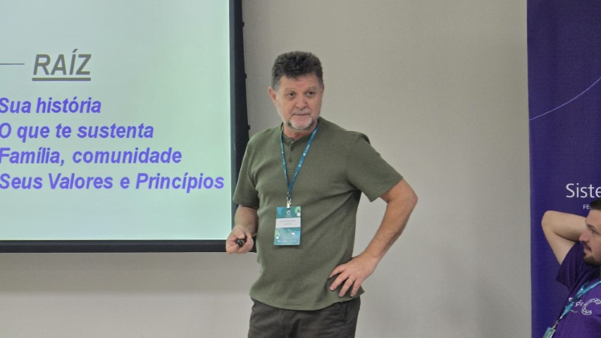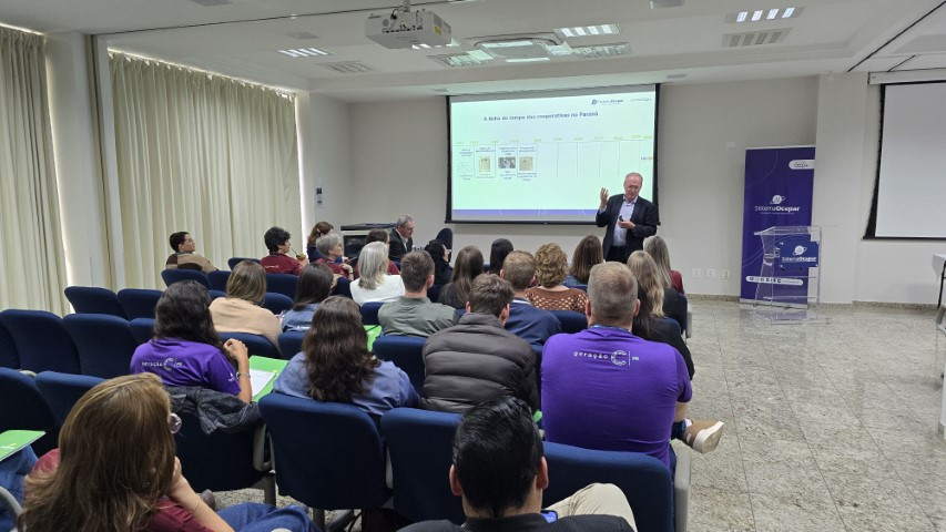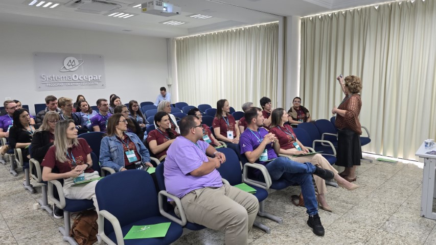 A mestre em Gestão de Cooperativas e especialista em Educação Corporativa, Sandra de Souza Schmidt, falou sobre conectar gerações por meio do cooperativismo com atenção à governança, ao propósito e ao legado. Sua fala provocou o resgate e o compartilhamento das vivências de cada liderança durante seu mandato. “O mandato está se encerrando, mas o trabalho não para por aqui porque são pessoas envolvidas e que, após suas experiências com líderes, com tudo o que vivenciaram e aprenderam, passam a ser construtores dos futuros das cooperativas”, avaliou.
