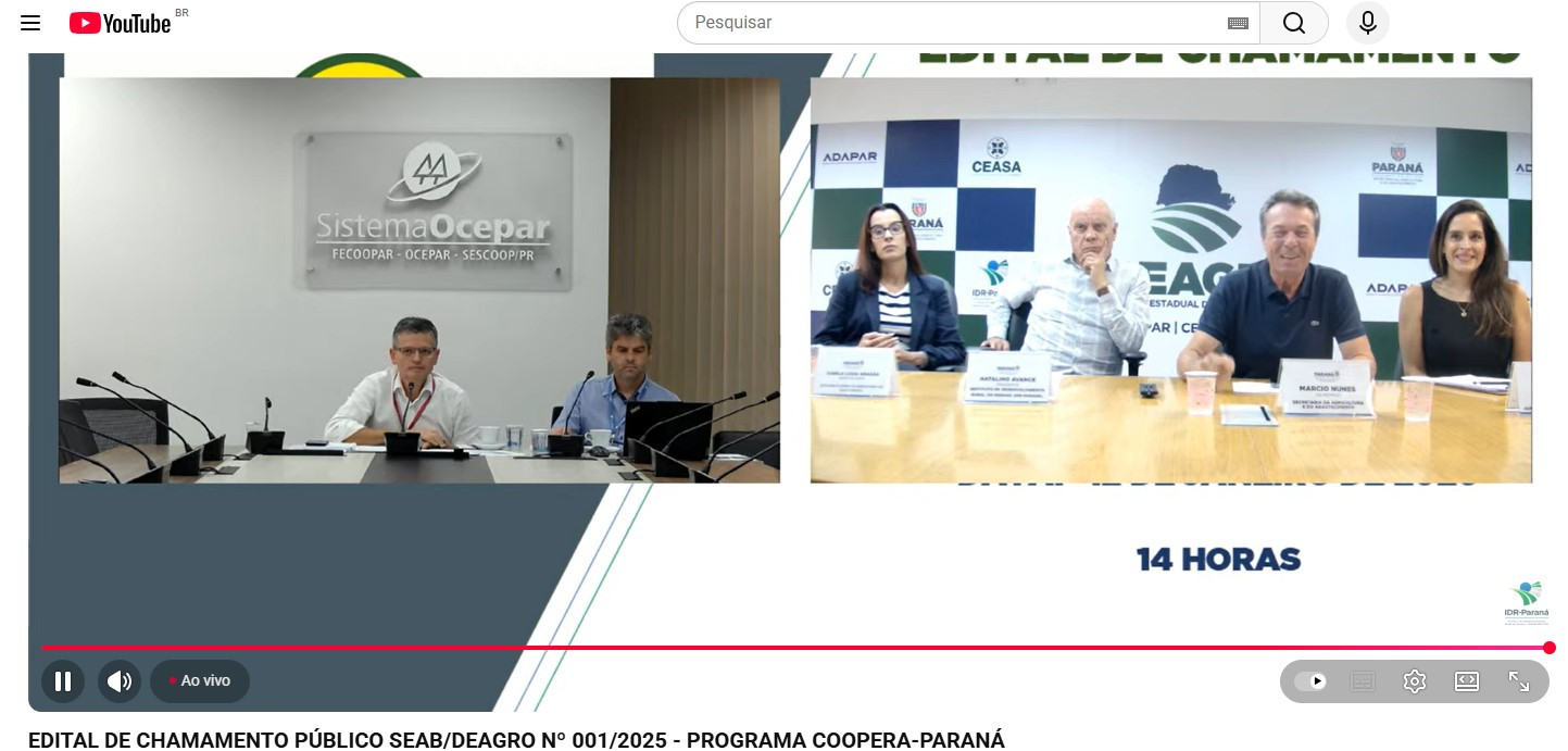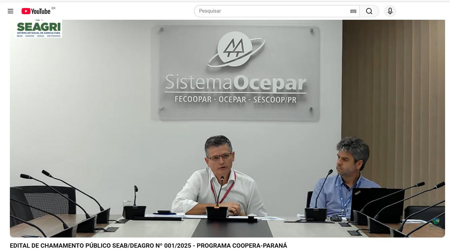 Clique aqui para assistir ao evento de apresentação do edital de chamamento público do Programa Coopera Paraná