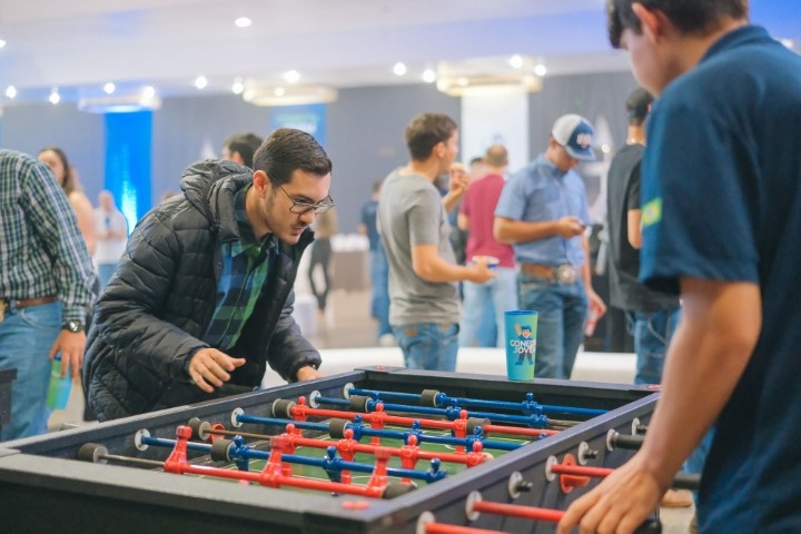 A segunda edição do Conecta Jovem saiu ao gosto das novas gerações de associados da C.Vale. Os mais de 600 jovens que foram à Asfuca de Palotina (PR), no dia 18 de outubro, encontraram um ambiente formatado para combinar qualificação com descontração. Voltado à sucessão familiar, o encontro teve um bate-papo com quatro diretores da cooperativa respondendo a questões formuladas via celular pelos participantes, e as apresentações do radialista e humorista Juca Bala e do influenciador digital Murilo Groth.
