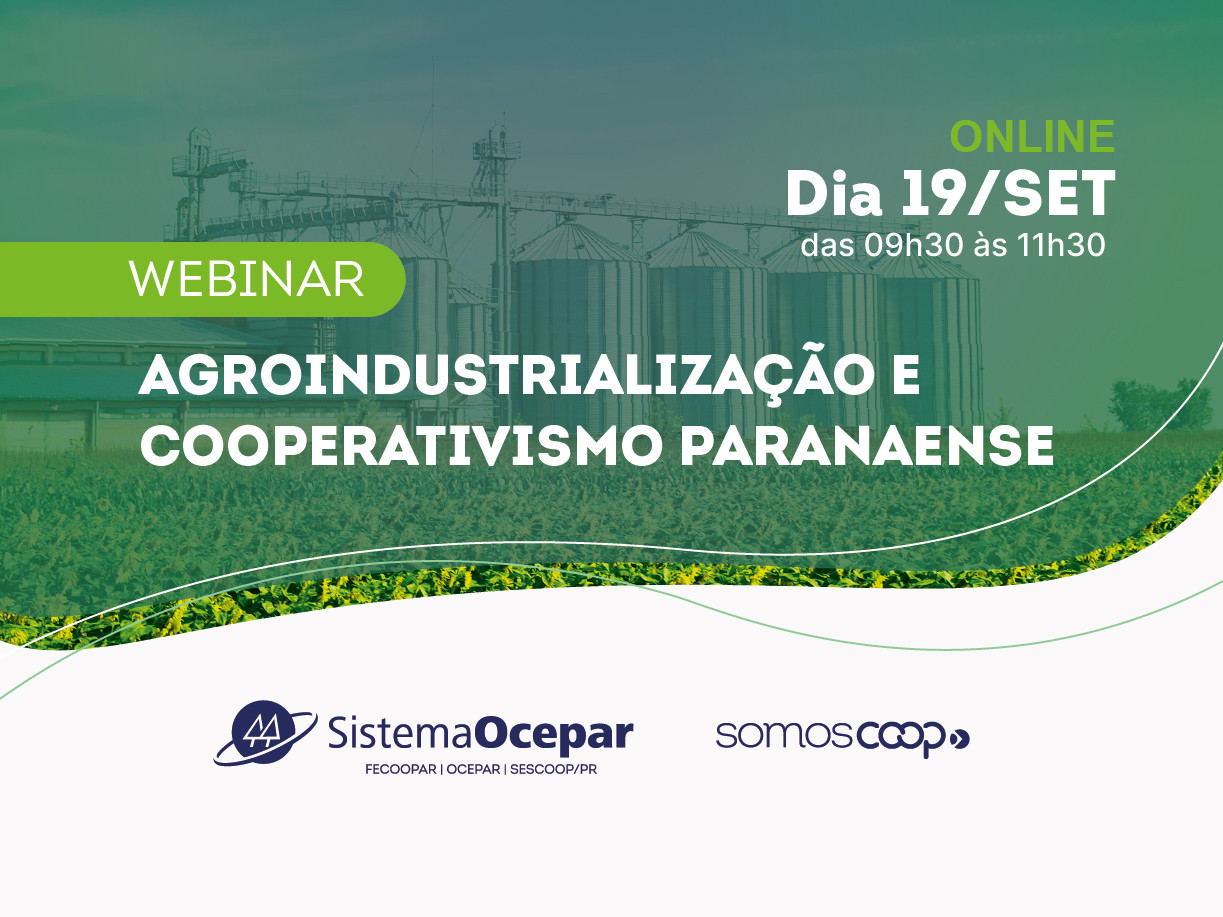 Na sexta-feira (19/09), das 9h30 às 11h30, o Sistema Ocepar promove o Webinar “Agroindustrialização e cooperativismo paranaense”. O evento online terá a participação do diretor de pesquisas do Ipardes, Júlio Suzuki Júnior.