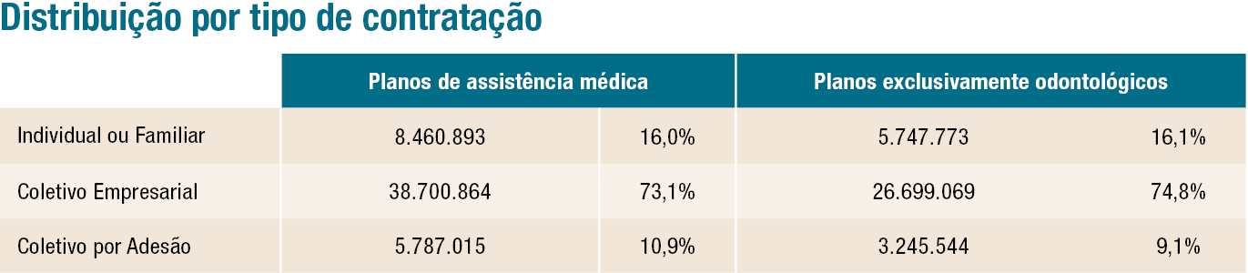 De forma semelhante, o crescimento de 8,37% no número de beneficiários em planos exclusivamente odontológico coletivos empresariais elevou a participação de 71,6% para 74,8% do total deste segmento.