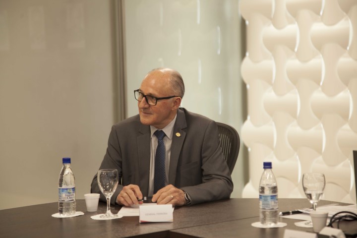 A Frimesa e suas filiadas – C.Vale, Copagril, Copacol, Primato e Lar, receberam na quarta-feira (18/08), o diretor-geral brasileiro de Itaipu, general João Francisco Ferreira. Também participaram do encontro o diretor-superintendente do Parque Tecnológico Itaipu, general Eduardo Garrido, e o integrante da Câmara de Logística e Infraestrutura do Codefoz, Danilo Vendruscolo.