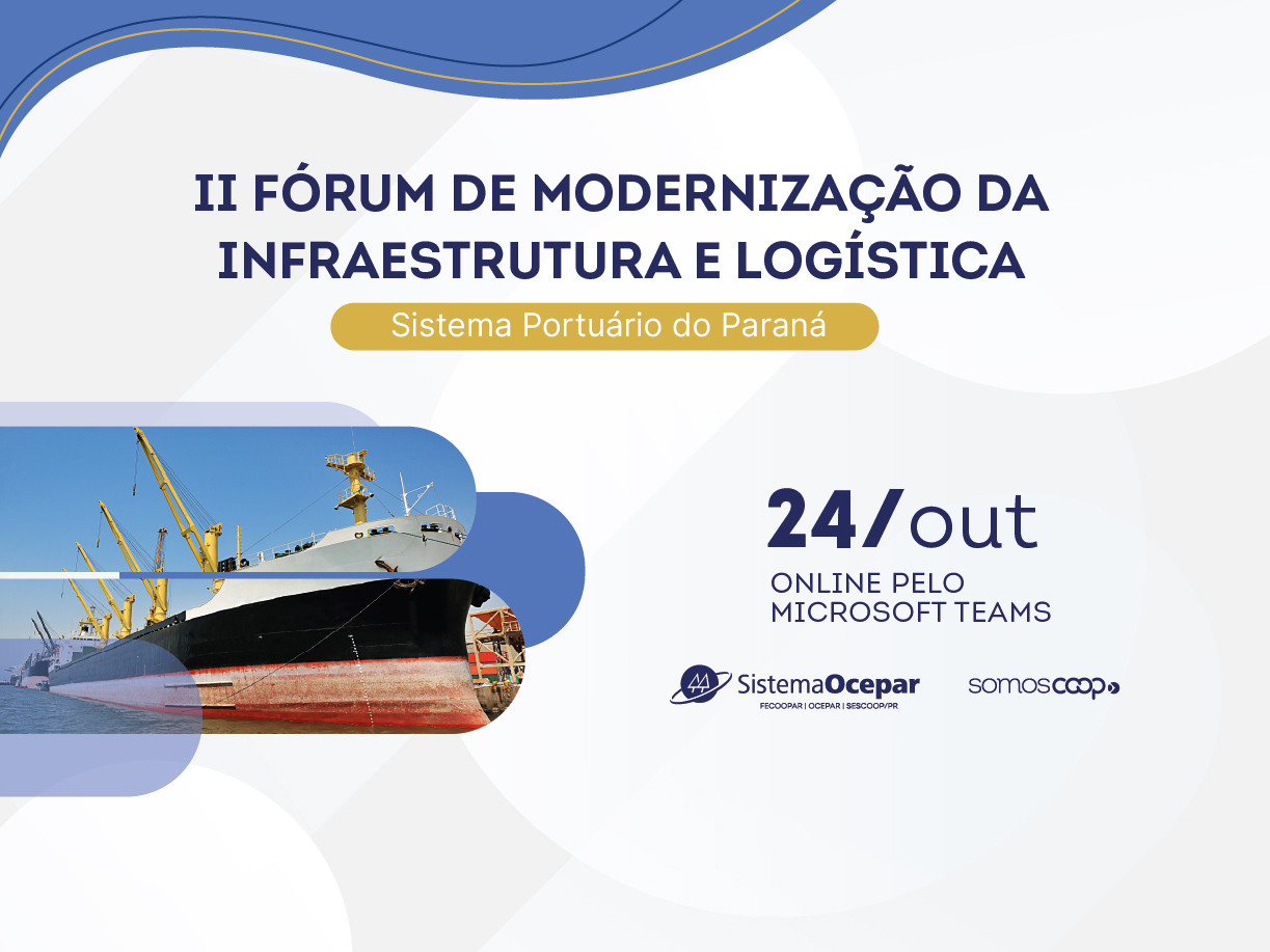 O sistema portuário do Paraná é o tema do 2º Fórum de Modernização da Infraestrutura e Logística que o Sistema Ocepar promove, na sexta-feira (24/10), das 9h às 10h30. O diretor-presidente da Portos do Paraná, Luiz Fernando Garcia da Silva, será o palestrante convidado.