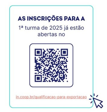 A primeira turma de 2025 já está com inscrições abertas até o dia 9 de maio, por meio do link: in.coop.br/qualificacao-para-exportacao. (Sistema OCB)
