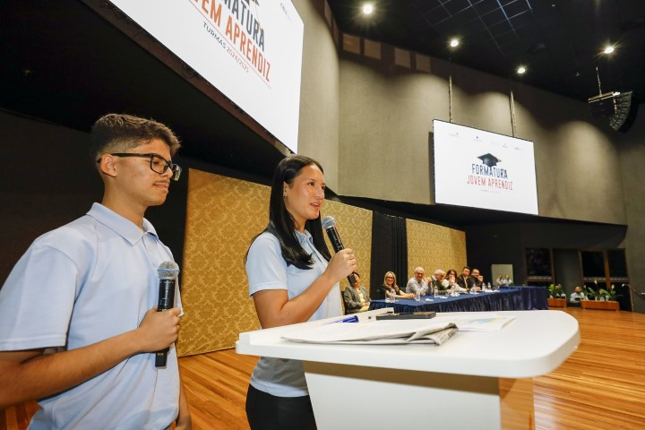 Entre os formandos, a emoção também tomou conta. Isabella Yumi Pissin Watanabe compartilhou sua trajetória com gratidão e orgulho. “Desde o primeiro dia, fui acolhida com muita paciência e apoio. Aprendi a ter autonomia, responsabilidade e maturidade para enfrentar desafios. Essa experiência mudou minha vida, influenciou minha escolha de faculdade e me transformou como pessoa”, contou, emocionada.