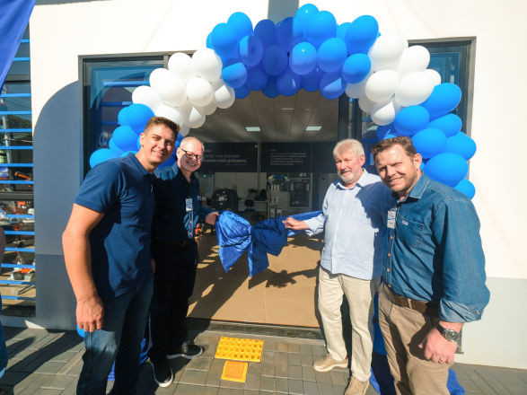 A solenidade de abertura reuniu o prefeito Lari Hitz, o presidente da Associação Comercial, Industrial e Agropecuária, Kassio Alberto Rusch, o gerente regional da cooperativa Edir Müller, o gerente da unidade local da C.Vale, Damian Sponchiado, e o gerente do Departamento de Máquinas e Acessórios, Renato Figueiroa.