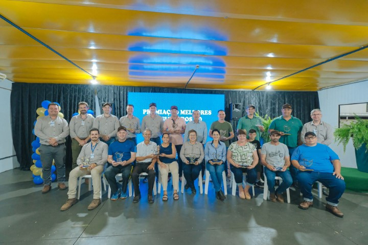 Durante o encerramento do Dia de Campo a C.Vale premiou os melhores profissionais de seu sistema de integração avícola. Entre os produtores de frango, a vencedora da categoria Promob (Programa de Monitoramento e Organização de Biosseguridade) foi Anaí Bacci Naves, de Assis Chateaubriand. Na categoria Conversão Alimentar, Mário Toshio Yassue, de Terra Roxa, foi o vencedor. (Assessoria de Imprensa C.Vale)