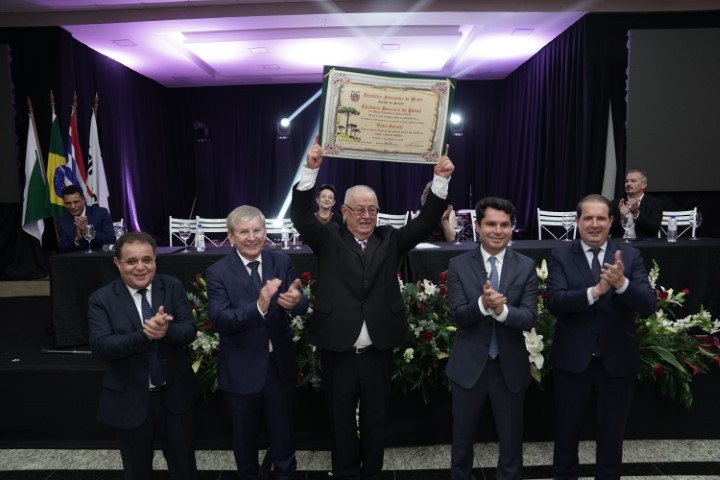 Em uma noite marcada por emoção e reconhecimento cívico, a Assembleia Legislativa do Paraná (Alep) realizou, no dia 5 de dezembro, na Assercoop, em Medianeira (PR), a solenidade de entrega do Título de Cidadão Honorário do Paraná a Valter Vanzella e Elias José Zydek, ex-presidente e atual presidente da Frimesa. A honraria, uma das mais altas concedidas pelo Estado, destacou o impacto das gestões de ambos no desenvolvimento econômico e social da região Oeste e de todo o Paraná.