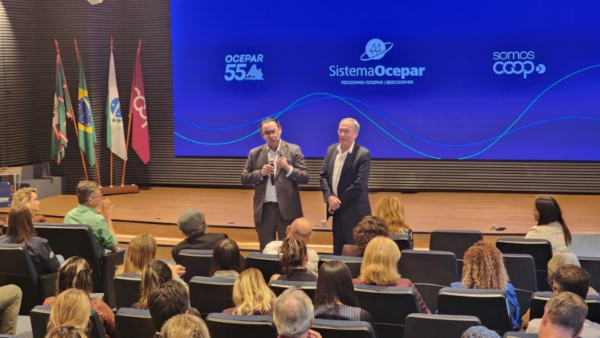 Um dos principais palestrantes da ExpoApras 2026, evento promovido pela Associação Paranaense de Supermercados (Apras), de 14 a 16 de abril, em Pinhais (PR), o psiquiatra e escritor Augusto Cury esteve na sede do Sistema Ocepar, em Curitiba, no final da manhã dessa quarta-feira (15/04). O palestrante fez uma breve apresentação aos empregados da casa, em que falou sobre cooperativismo, saúde mental e desafios na jornada atual dos seres humanos.