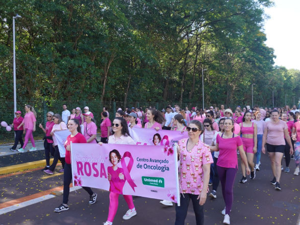 O caminho entre o Hospital Geral Unimed (HGU) de Toledo (PR) e o Lago Municipal Diva Paim Barth ganhou uma cor diferente no sábado (11/10). Mais de 150 pessoas vestiram-se de rosa para disseminar a importância do cuidado integral com a saúde feminina.