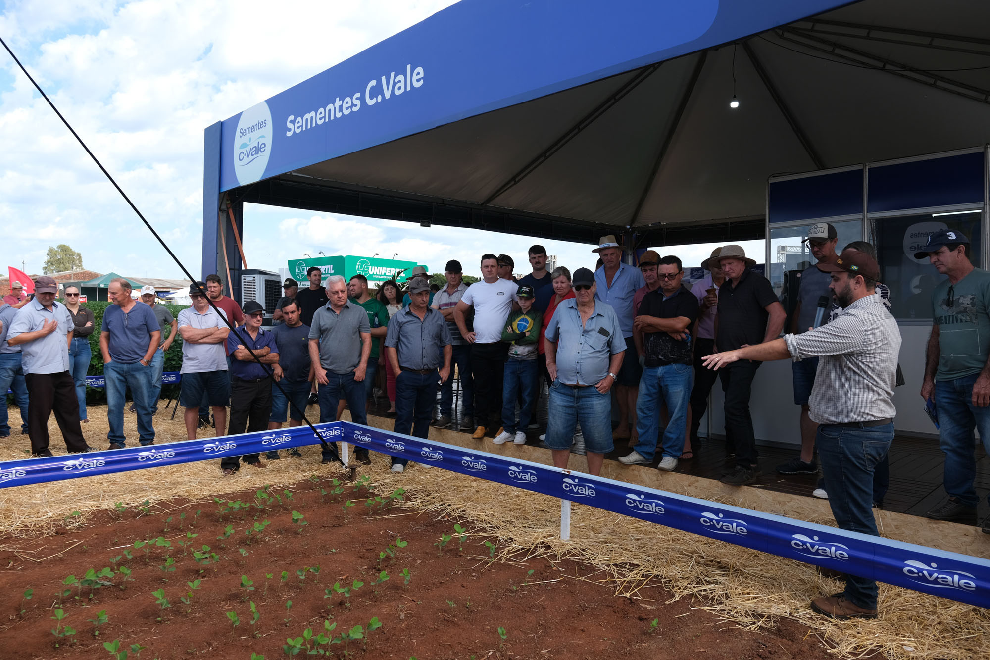 Estiveram presentes na abertura do evento o diretor-executivo da C.Vale (CEO) Édio Schreiner, os diretores Luciano Trombetta (Produção) e de Comercialização, Alexandre Tormen, o gerente regional para o Rio Grande do Sul, Evandro Riboli, e o gerente do Departamento Agronômico, Digo Giongo.