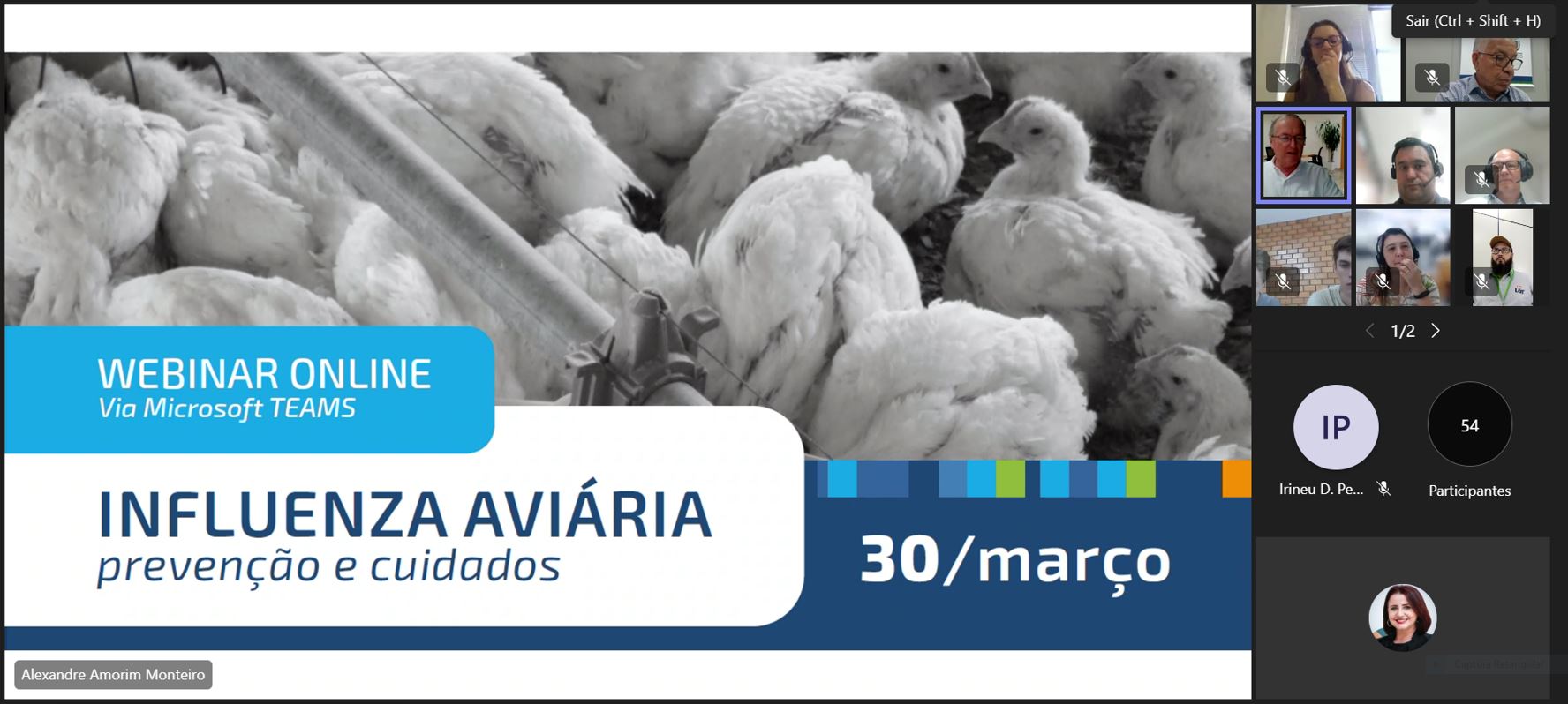 Preocupação - Para discutir esse assunto e os impactados na cadeia produtiva do Paraná, principal produtor e exportador nacional de frango, o Sistema Ocepar promoveu, nessa quinta-feira (30/03), um seminário online, em conjunto com a Adapar (Agência de Defesa Agropecuária do Paraná), para gestores e técnicos das cooperativas que atuam em atividades de avicultura industrial. O objetivo foi fornecer orientações e informações atualizadas sobre a doença e reforçar as medidas de prevenção que devem ser adotadas pelos produtores avícolas para proteger suas populações de aves.