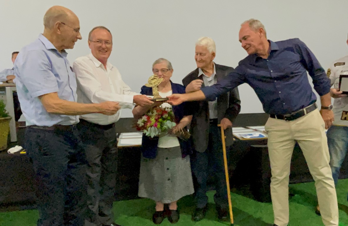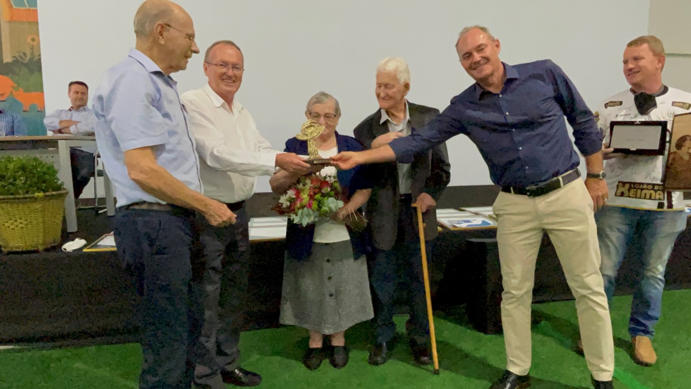 Homenagens - Durante assembleia da Frísia, realizada no dia 26 de março deste ano, Walter Degger e sua esposa foram homenageados pela cooperativa com uma placa, destacando todo empenho e dedicação por mais de sete décadas para o cooperativismo. Ele também recebeu das mãos de José Roberto Ricken, presidente do Sistema Ocepar, do presidente da Frísia, Renato Greidanus e do ex-presidente da Ocepar, Dick Carlos de Geus, o troféu “Cooperativas Orgulho do Paraná”. Na ocasião, Degger afirmou: “Foram tempos difíceis, mas com o apoio da família e da cooperativa pudemos desenvolver a atividade e nos manter produzindo leite no início e atualmente grãos. Até hoje entrego toda produção na matrícula que ainda está no meu nome na Frísia”, disse.