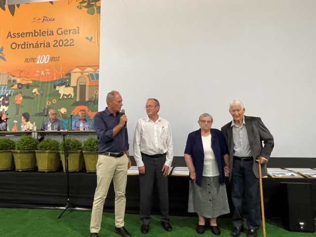 Apoio - Com 90 anos, Walter Degger é hoje o cooperado mais antigo em atuação no Paraná. Ele lembra que com apenas 20 anos decidiu se tornar cooperado. “Foram tempos difíceis, mas com o apoio da família e da cooperativa pudemos desenvolver a atividade e nos manter produzindo leite no início e atualmente grãos. Até hoje entrego toda produção na matrícula que ainda está no meu nome na Frísia”, disse. Além do troféu, Degger também foi homenageado pela cooperativa com uma placa.