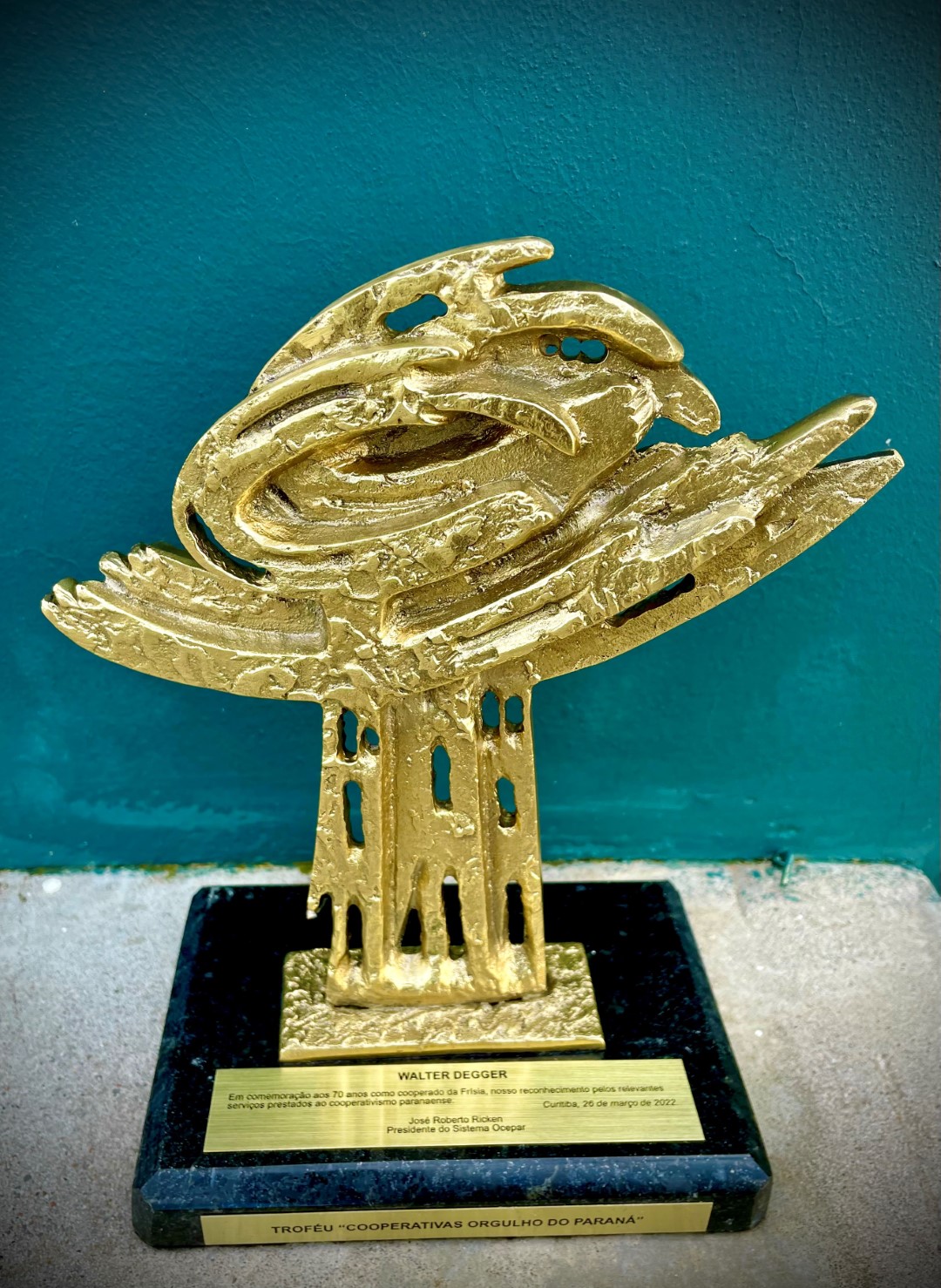 Troféu - Ao fazer a entrega do troféu para o casal Degger, Ricken destacou que o troféu "Cooperativas Orgulho do Paraná" foi instituído em 2009, com o objetivo de reconhecer pessoas e instituições que contribuem para o desenvolvimento do cooperativismo paranaense. Este mesmo troféu já foi concedido a Cooperativa Frísia, em 2011, por ocasião dos 100 anos de imigração holandesa ao Paraná.