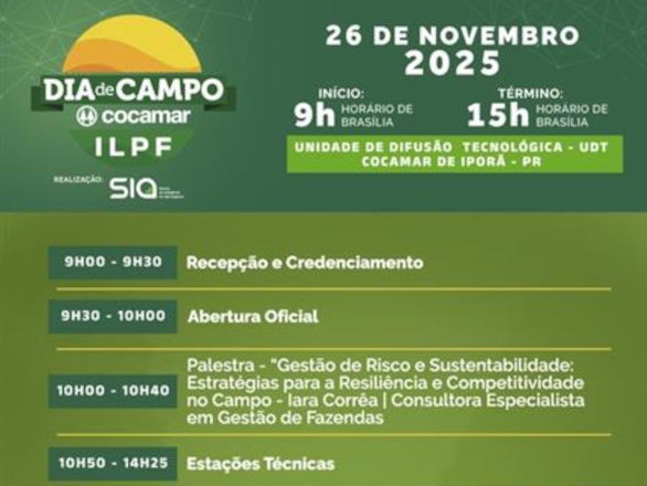 A Unidade de Difusão de Tecnologias (UDT) da Cocamar em Iporã, na região noroeste do Paraná, recepciona produtores e técnicos, na quarta-feira (26/11), para a realização do tradicional Dia de Campo sobre Integração Lavoura-Pecuária-Floresta (ILPF).