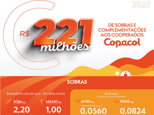 A cooperação gera frutos que são divididos entre todos que se dedicam dia a dia para alcançar o desenvolvimento coletivo. Com a superação de desafios e metas alcançadas, a Copacol mantém essa tradição que acelera esse contínuo ciclo de prosperidade.