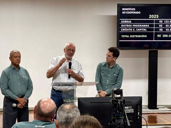 A Cocamar Cooperativa Agroindustrial começou a fazer a distribuição, na manhã desta quarta-feira (17/12), aos seus cooperados, de um montante de mais de R$ 200 milhões proveniente de sobras do exercício 2025. O valor é superior aos R$ 169 milhões.