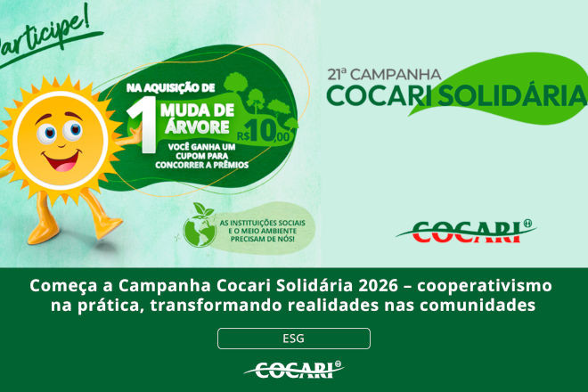 A Cocari está lançando a Campanha Cocari Solidária 2026, chegando à sua 21ª edição, consolidada como um compromisso da cooperativa com o desenvolvimento social das comunidades onde atua.