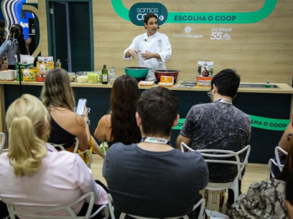 Além de funcionar como local de interação entre visitantes e cooperativas, o Espaço Paraná Cooperativo na 43ª Feira e Convenção Paranaense de Supermercados (ExpoApras), que termina nesta quinta-feira (16/04), se destaca pela presença do chef de cozinha Guilherme Guzela.
